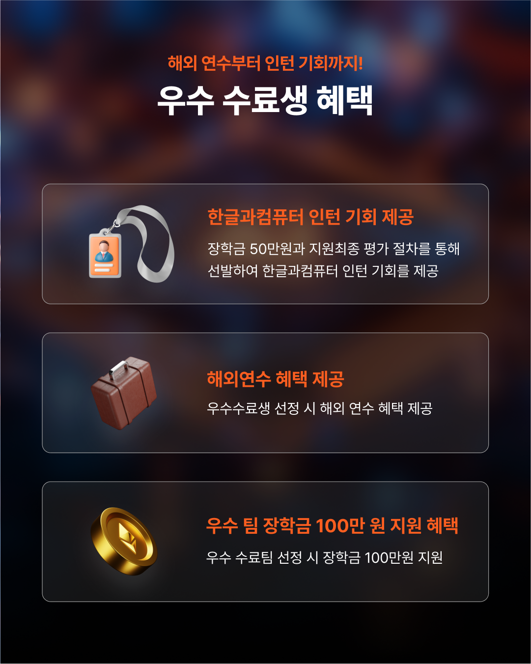 - 해외 연수 + 장학금 50만원 지원
