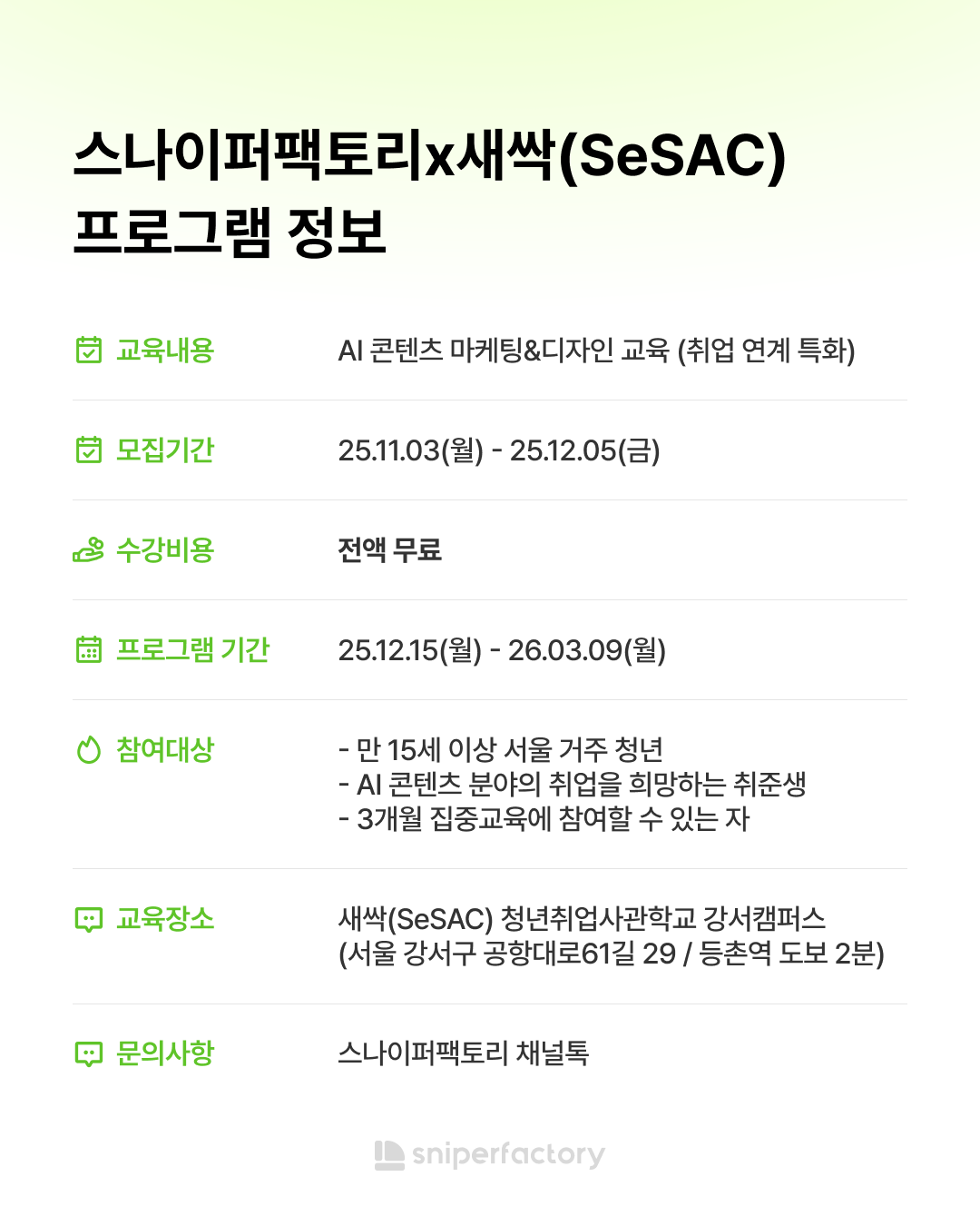 | [스나이퍼팩토리] AI 기반 콘텐츠 제작 프로젝트 과정 모집 (~11/17) (0) | 2025.10.29 |