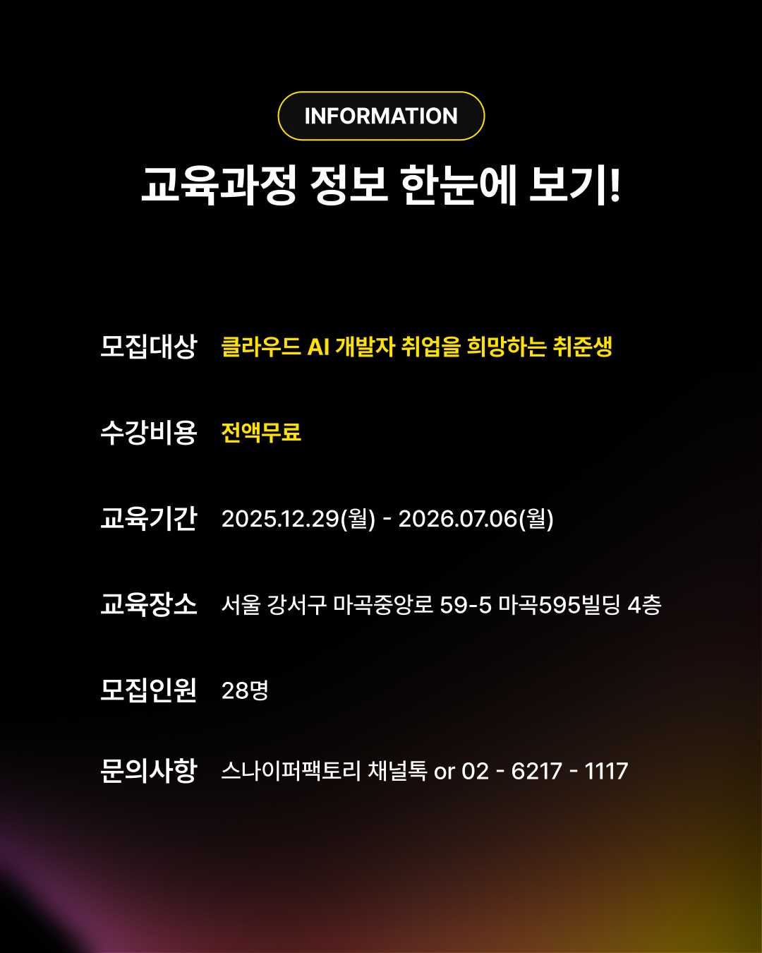 교육 기간: 2025년 12월 29일(월) ~ 2026년 7월 6일(월)