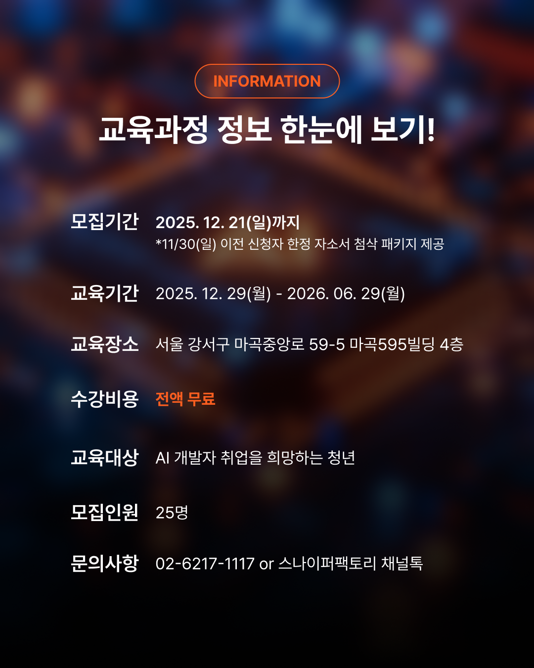 - 정규교육 : 25.12.29(월) ~ 26.04.30(목)