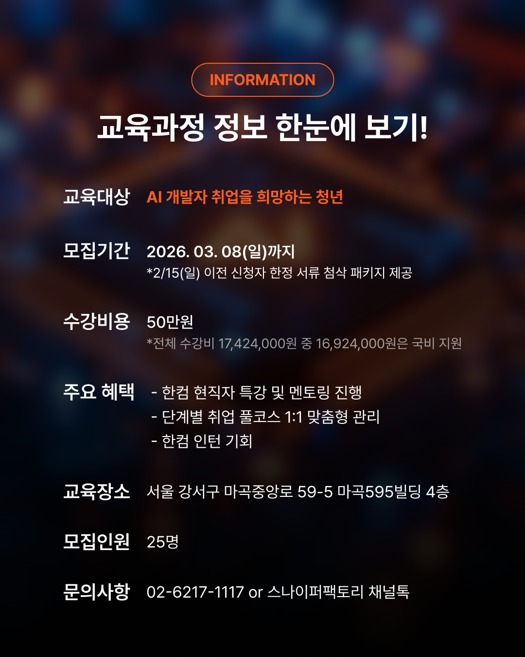 - 교육 장소 : 서울 강서구 마곡중앙로 59-5, 마곡595빌딩 4층