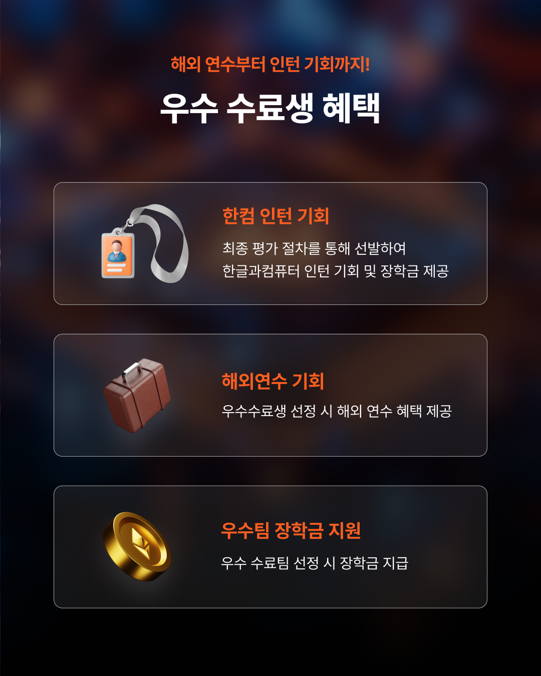 - 해외연수 및 장학금 지원