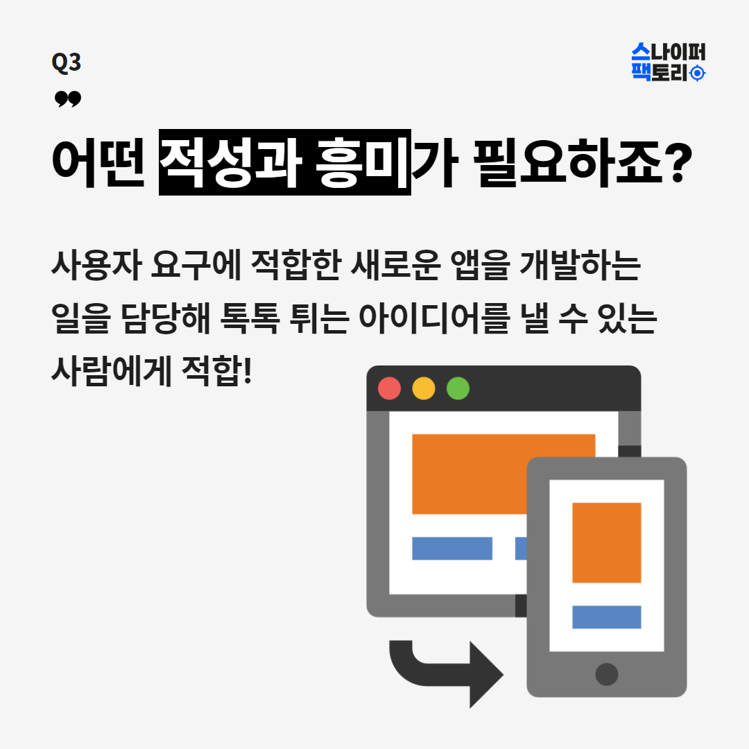 스마트폰이나 태블릿PC 등 모바일기기에서 사용되는 프로그램, 사용자가 필요한 앱을 개발한다고 합니다!